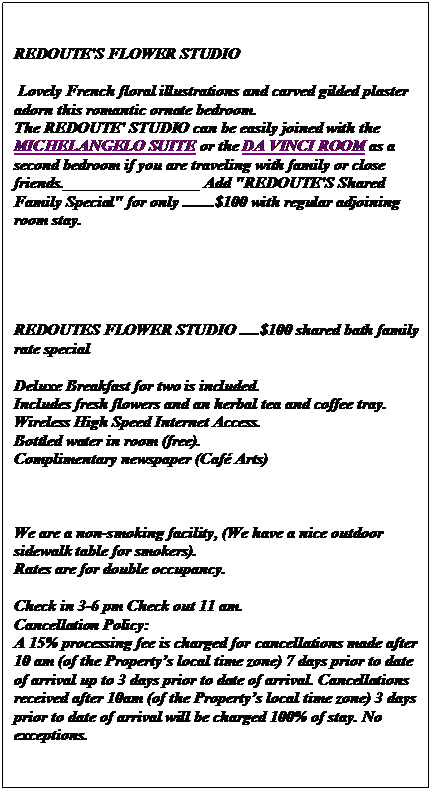 redoute's flower studio: luxurious bed and breakfast with aromatherapy spa located in coastal historic art district, ventura, californiaaromatherapy apothecary: essential oils, carrier oils, sea salts, sea mud, formulary, pain linaments, beauty facial oil, detox massage oil, medi-spa productsBevel: